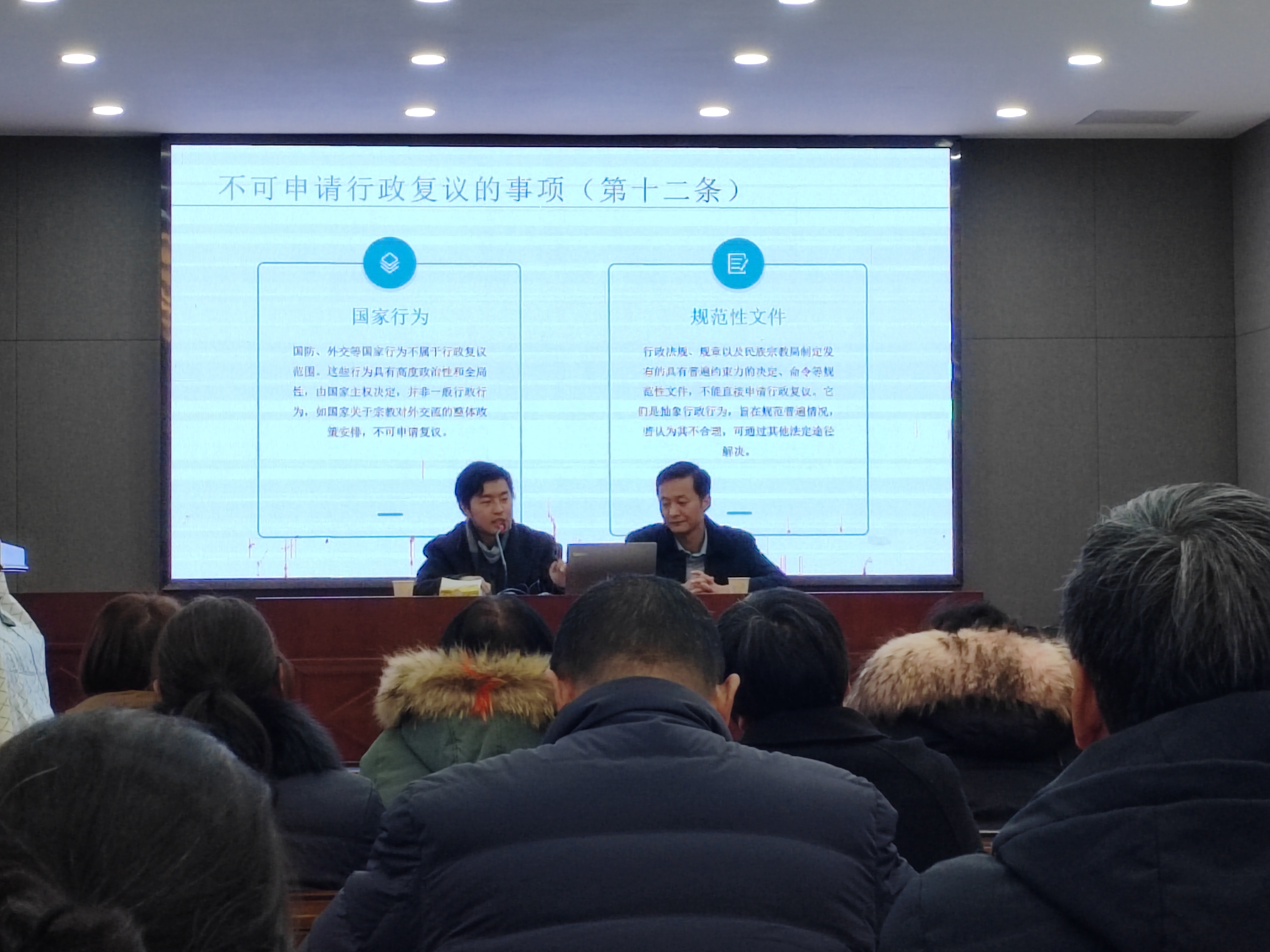 此次法治大讲堂以《中华人民共和国行政复议法》为主题,邀请了市民宗局法律顾问蔡明律师进行专题授课。蔡律师以简洁明了、通俗易懂的语言重点宣传了新行政复议法的亮点和变化以及行政复议申请期限、条件、审理方式、办理流程、免费复议等法律规定,解答群众提出的法律问题,有效消除了“不知复议”的盲区和“不敢复议”的顾虑。