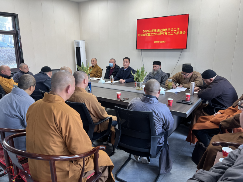 近日,姜堰区佛协召开会议,学习安全消防知识,总结2023年度工作,部署春节期间安全生产。姜堰区委统战部副部长、民宗局局长郑迎军应邀出席会议。