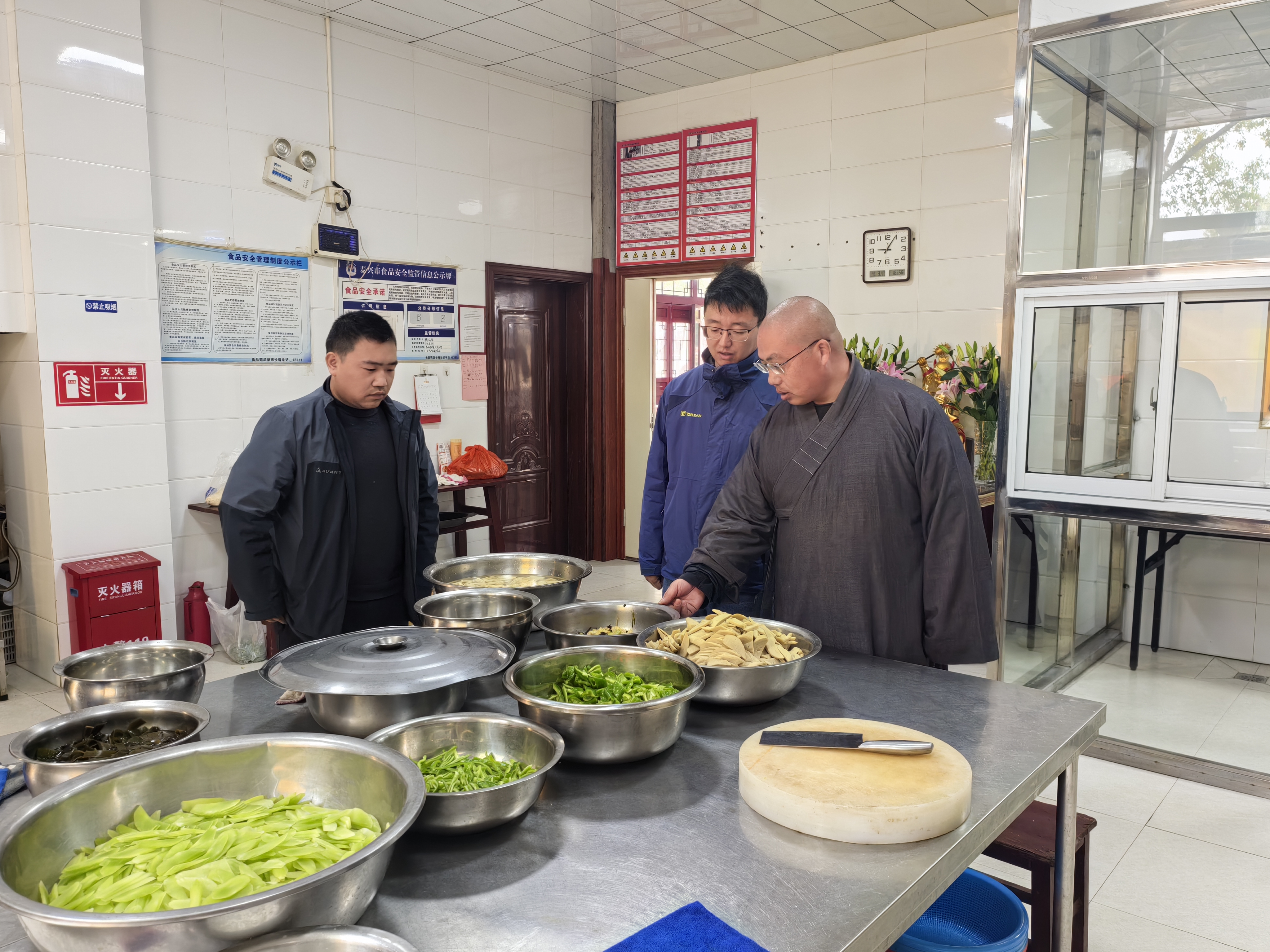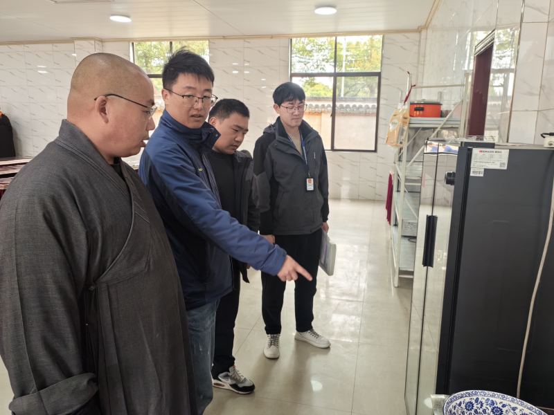 水陆法会作为佛教重要的传统法事活动,具有广泛的影响力,吸引了众多信众和游客前来参与。为从源头上杜绝食品安全问题,古溪镇提前谋划、主动作为,对东方禅寺内的斋堂、食品储存间等重点场所展开全面且细致的检查。