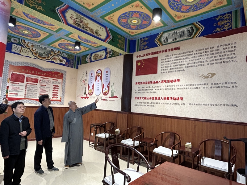 在连云港市,考察组一行先后深入连云港法起寺、延福观和赣榆区基督教中心堂实地考察了宗教中国化实践馆、指导站、示范点等成果展示平台建设情况,围绕宗教中国化实践场馆设计、内容谋划、平台使用等,认真听取了民宗部门、宗教团体、宗教活动场所的情况介绍。