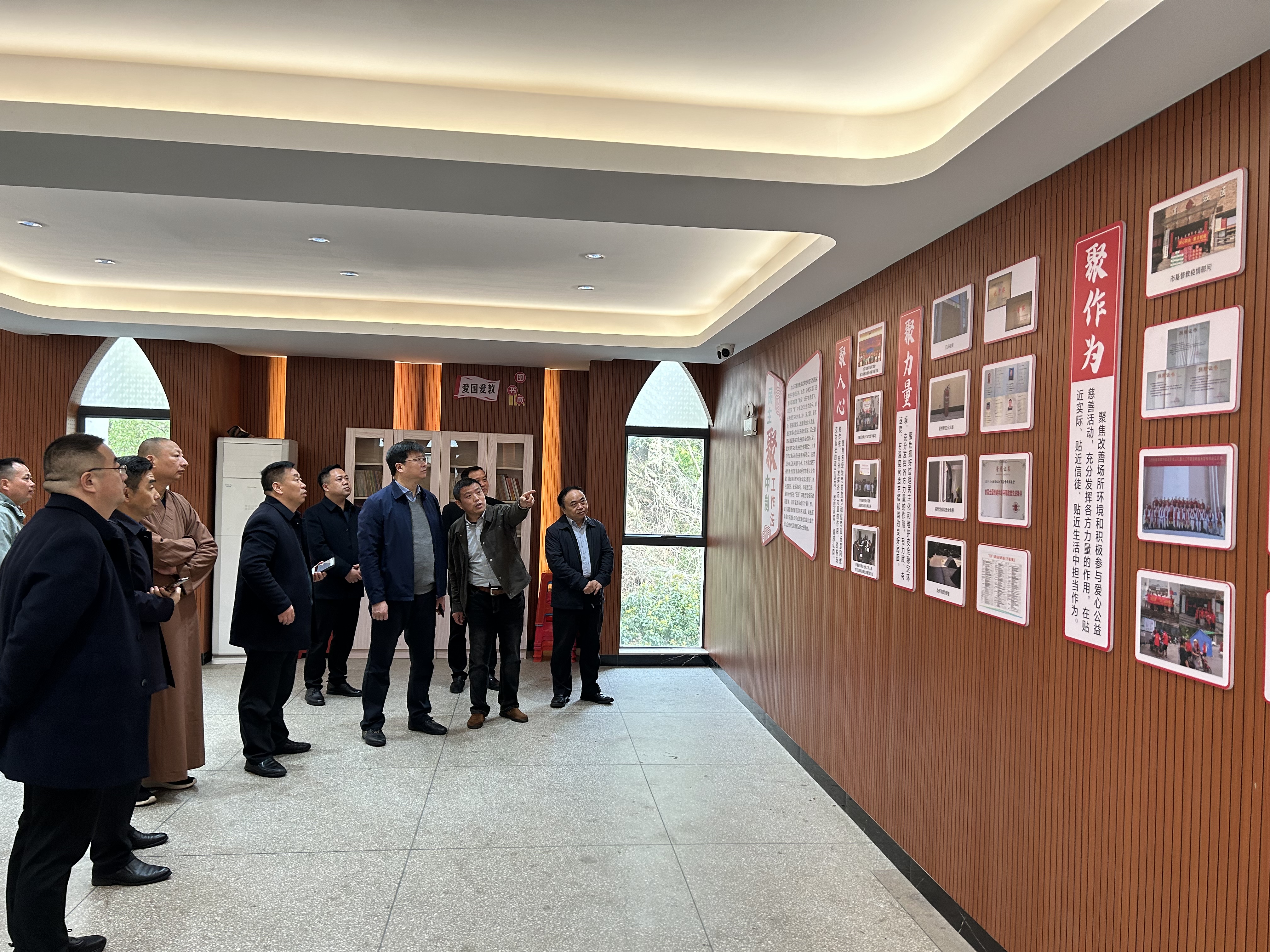 在江西省九江市,考察组一行先后深入濂溪区福音堂、东林寺和庐山市东林净土苑、万杉寺、栖贤寺、仙人洞道院、福音堂等宗教活动场所实地观摩了“五好”建设现场和成效,在与九江市委统战部进行座谈交流时,详细了解了“五好”宗教活动场所建设的组织领导、氛围营造、推进落实、考核评选等方面好的做法。